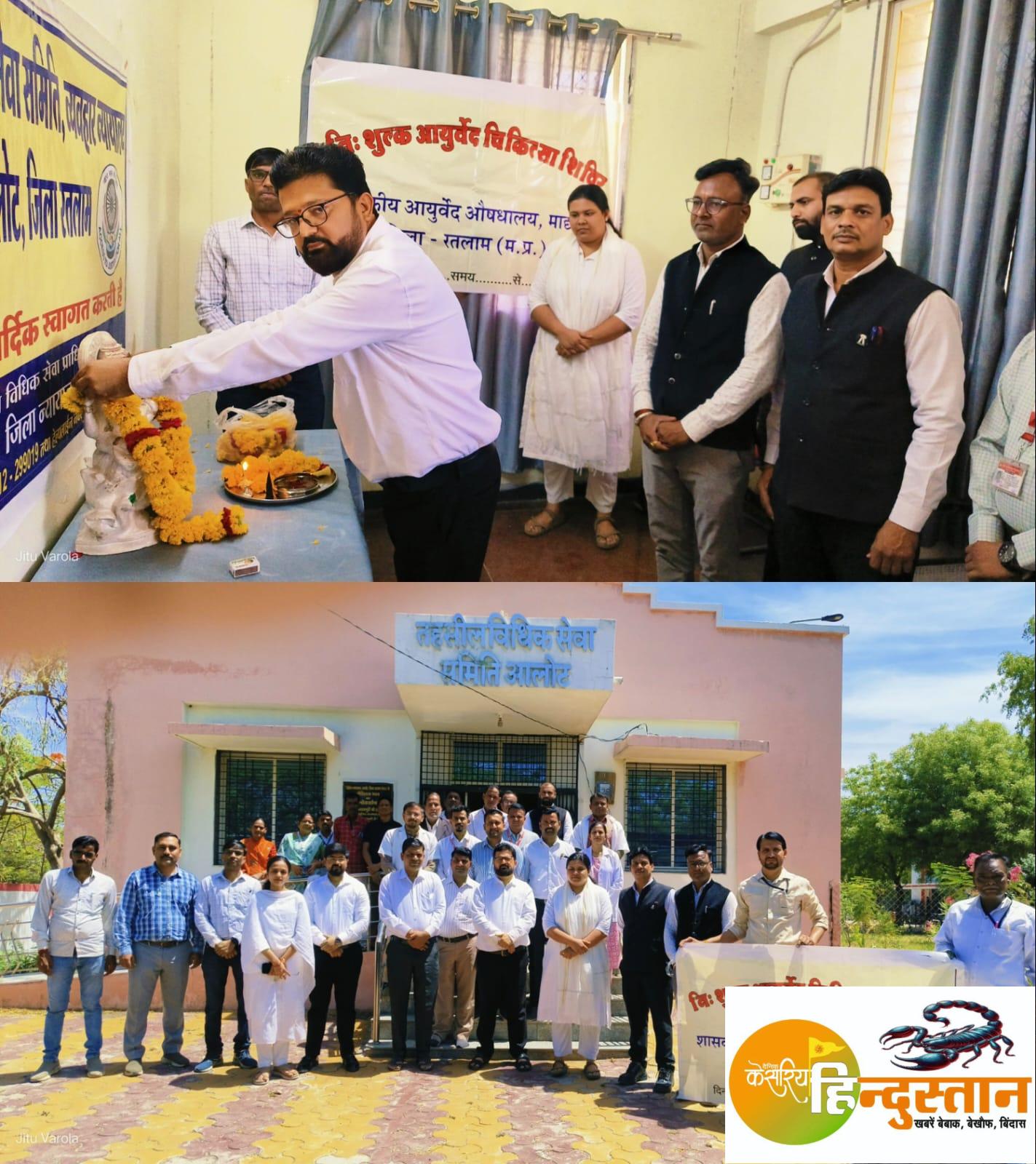 मध्य प्रदेश राज्य विधिक सेवा प्राधिकरण के निर्देशानुसार एवं प्रधान जिला एवं सत्र न्यायाधीश रतलाम सुश्री नीना आशापुरे के मार्गदर्शन में आज दिनांक 18/ 4/ 2026 को तहसील विधिक सेवा समिति न्यायालय आलोट द्वारा आयुर्वेद स्वास्थ्य शिविर का आयोजन किया गया जिसमें जिला न्यायाधीश संदीप कुमार सोनी द्वारा सरस्वती जी के चित्र पर माल्यार्पण कर शिविर का शुभारंभ किया गया। शिविर में न्यायालय के सभी कर्मचारी अधिवक्ता गण उपस्थित पक्षकार का स्वास्थ्य परीक्षण किया गया और दवाई वितरित की गई। शिविर में जिला न्यायाधीश डॉक्टर आरिफ खान पटेल व्यवहार न्यायाधीश वरिष्ठ खंड अनुप्रिया पाराशर त्रिपाठी व्यवहार न्यायाधीश कनिष्ठ खंड गोविंद सिसोदिया समीक्षा सिंह, डॉ अमित भूरिया, डॉक्टर संतोष बिगरोद, न्यायालय कर्मचारीगण अधिवक्तागढ़ आदि उपस्थित रहे।